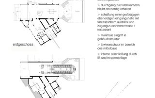 > schaffung einer großzügigen ebenerdigen eingangshalle mit fantastischem ausblick und zugang zu sonnenterrasse+ restaurant