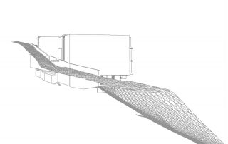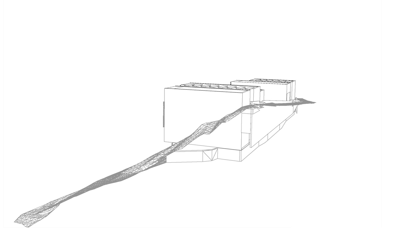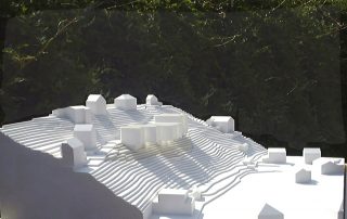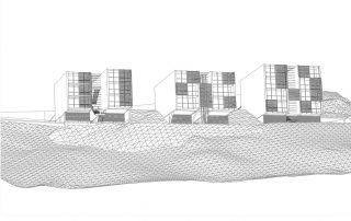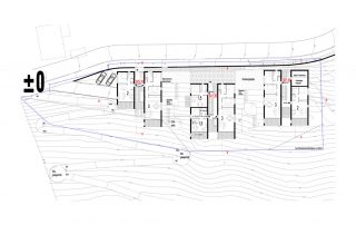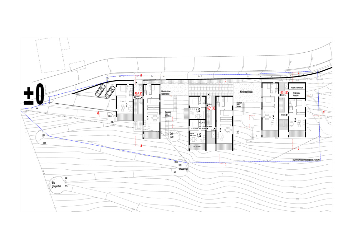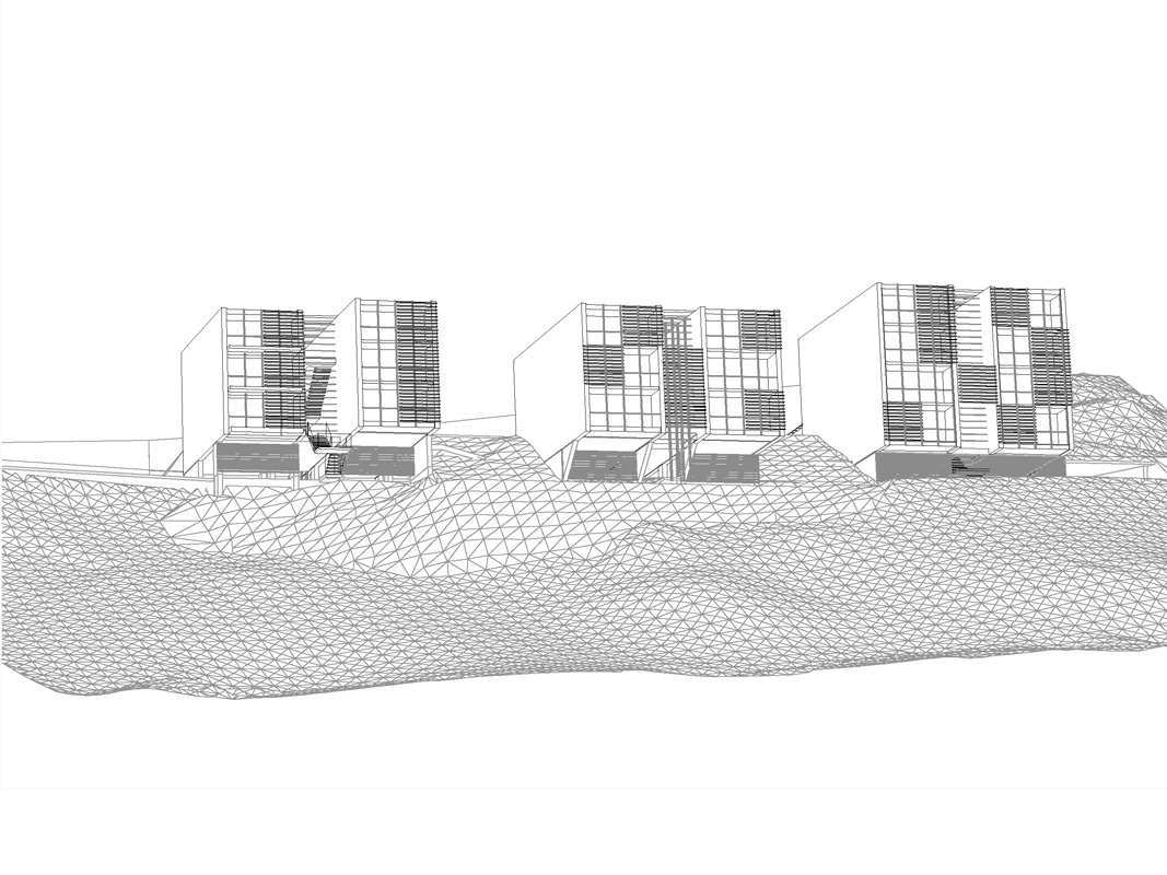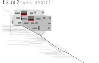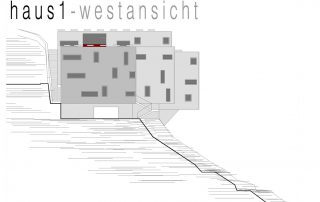 an einem steilen hang knapp über dem talboden schlagen wir die 3-gliederung der Wohnanlage vor, um Durchlässigkeit in der Falllinie zu erhalten und damit die umgebende körnung aufzunehmen.