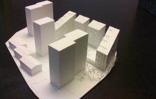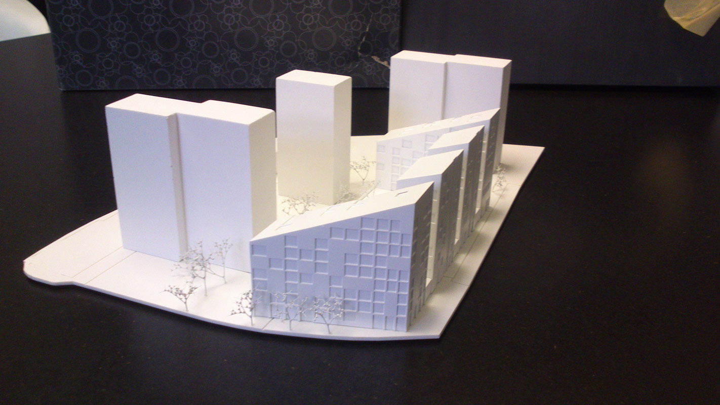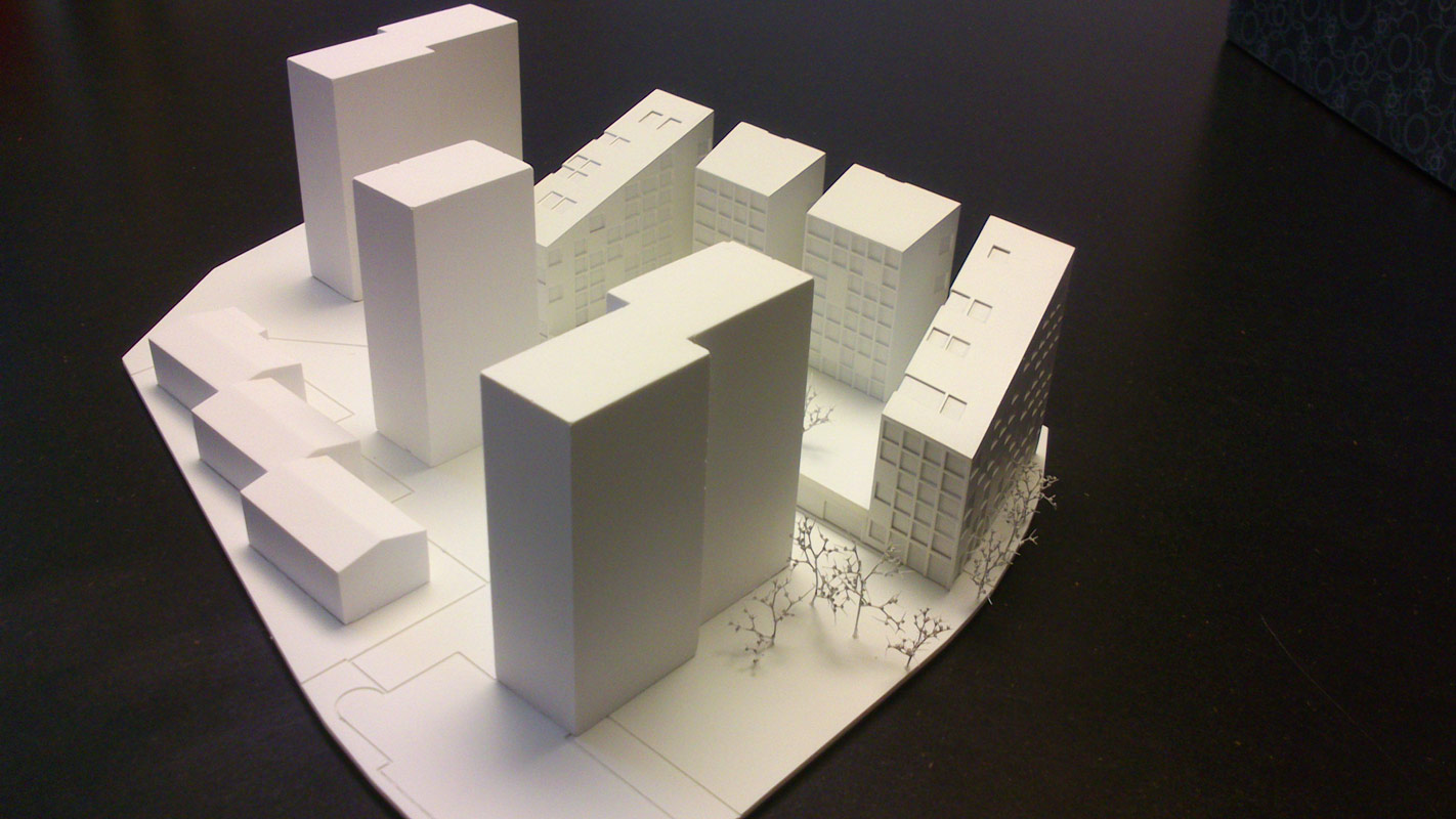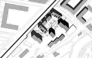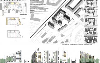 auf einem Grundstück zwischen 3 Hochhäusern aus den 70ern und dem bahnviadukt kommt ein Wohnbau zur Ausführung.