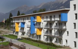therefor the access goes via balconies. The 2 buildings from our office contain 49 apartments on 3 respectively 4 floors.