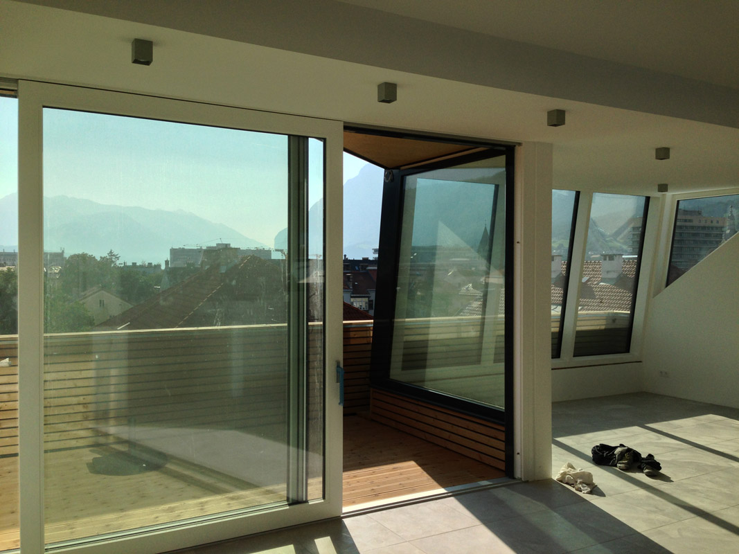 FACTS … client: Herwig Antretter adress: Innsbruck-Leopoldstrasse scope of work: full planning service completion: 2012 team: Georg Pendl, Sylvia Naschberger Foto: Maurizio Tami attic apartment in the historically protected area wilten.