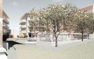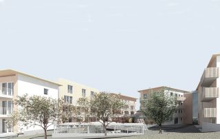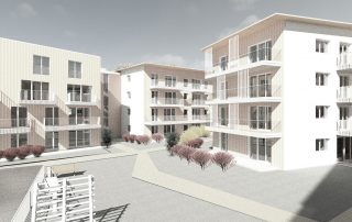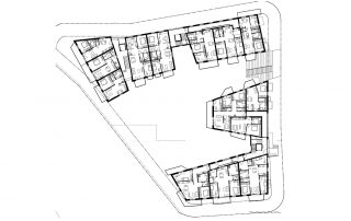 in einer freien fläche im erweiterten Siedlungsgebiet werden 50 Wohnungen in 5 Häusern errichtet.